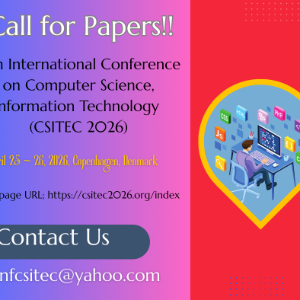 Authors are invited to submit papers through the conference Submission System by January 10, 2026. Submissions must be original and should not have been published previously or be under consideration for publication while being evaluated for this conference. The proceedings of the conference will be published by Computer Science Conference Proceedings in Computer Science & Information Technology (CS & IT) series (Confirmed).