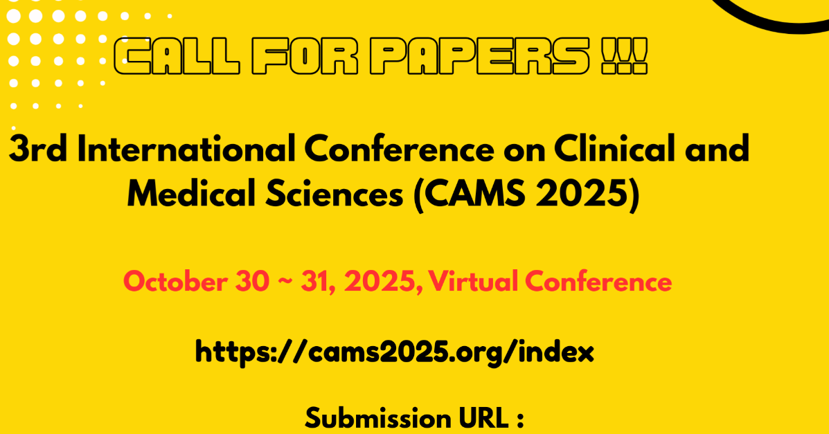 3rd International Conference on Clinical and Medical Sciences (CAMS 2025) Will provide an excellent knowledge. The goal of the conference is to reach researchers and practitioners from academia and industry to focus on understanding advances in Medical Sciences and establishing new collaborations in these areas. The aim of the conference is to provide a platform to the researchers and both academia and industry to meet and also to share the development in this field. Only original research papers are invited for the publication.