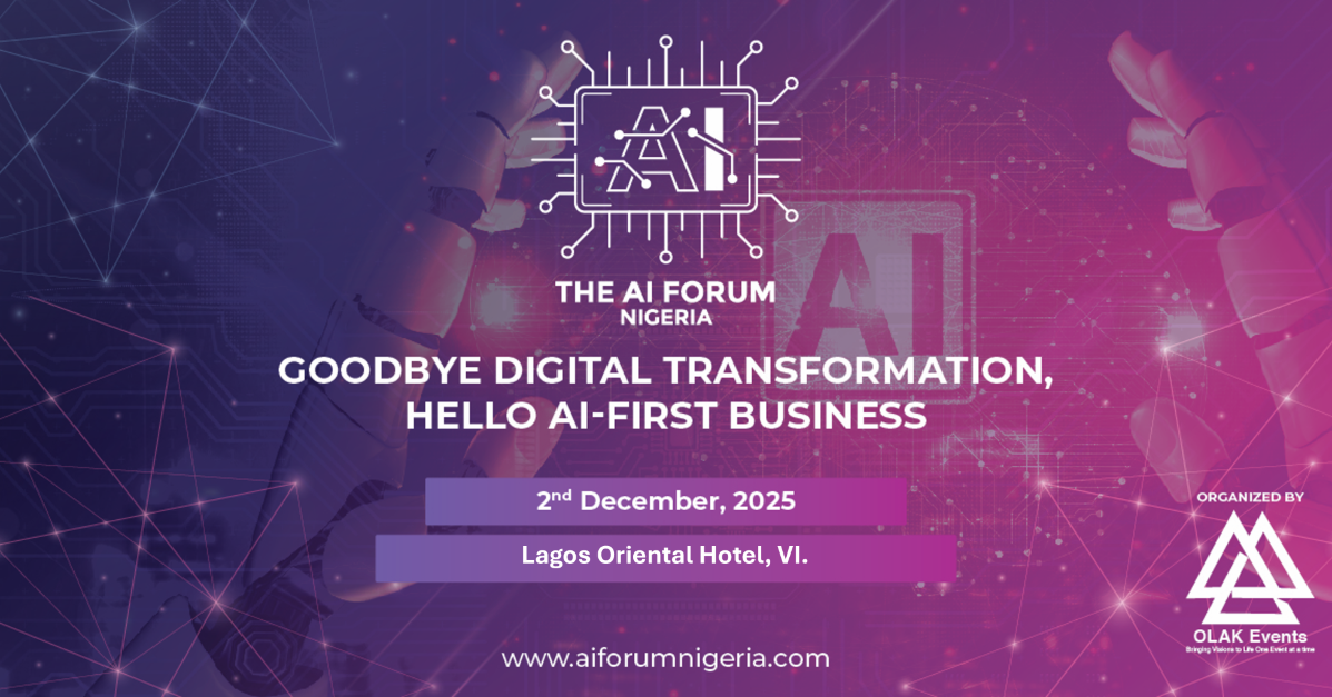 Lagos, Nigeria, December 2, 2025 - The 2025 edition of AI Forum Nigeria will bring together Nigeria’s leading business, technology and government decision makers for a landmark dialogue under the bold theme “Goodbye Digital Transformation, Hello AI First Business.” The forum will take place on 2 December 2025 at the Lagos Oriental Hotel in Victoria Island and is organised by OLAK Events Management.